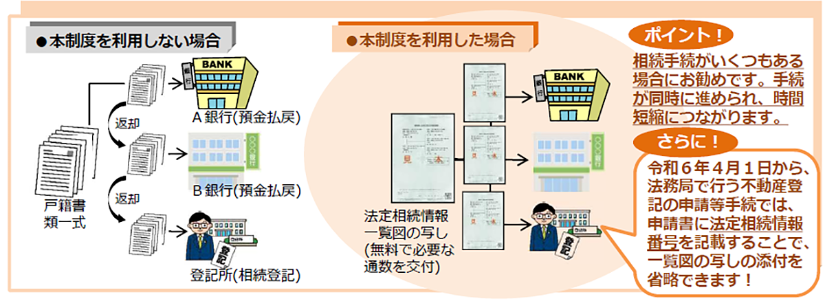 戸籍謄本が揃ったら、相続に関する親族関係図を作成し法務局にて「法定相続情報証明」を取得します。「法定相続情報証明」とは、簡単に言えば各機関への届け出、手続の際に求められる戸籍書類一式を法務局が証明して複数発行し、一度に申請を並行して行うことができる制度を言います
